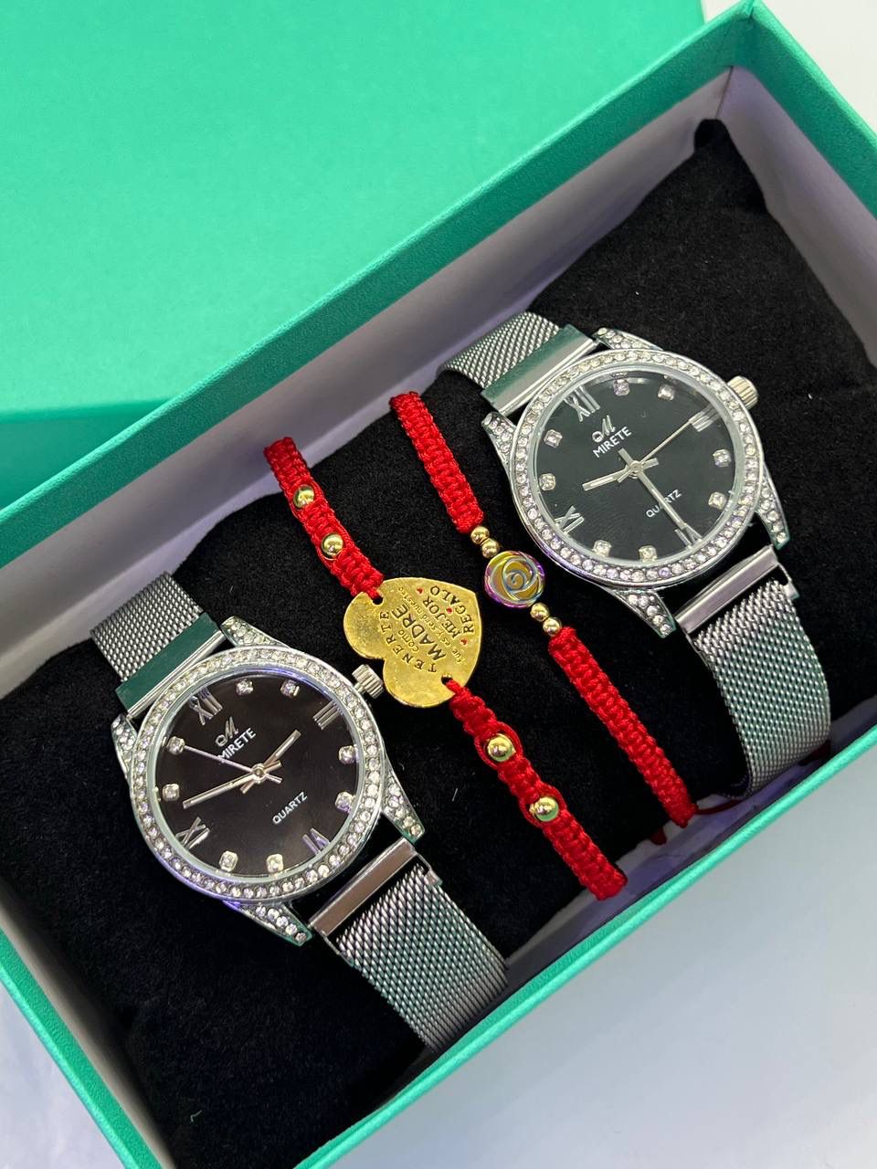 Set elegante de reloj y pulseras