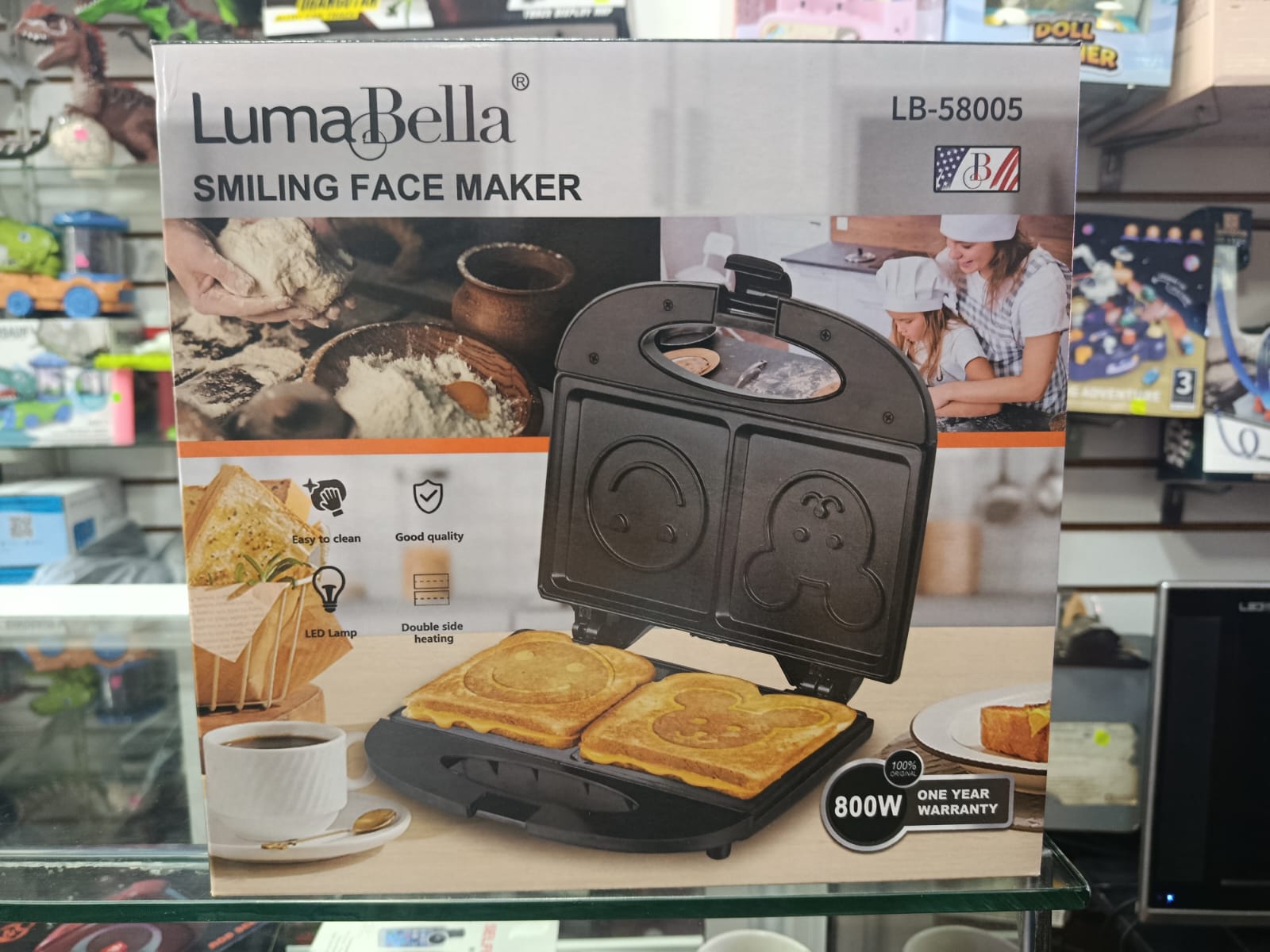 El producto mostrado es una sandwichera Luma Bella SMILING FACE MAKER (modelo LB-58005).